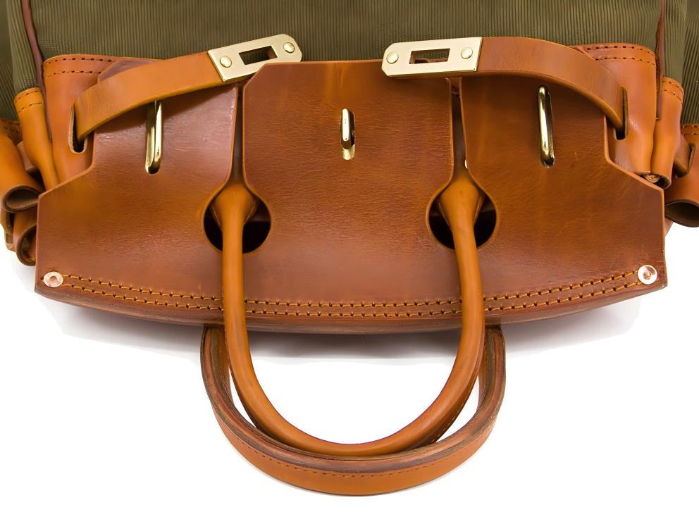 Canvas leather bags, made of head layer planting tanned leather and environmentally...