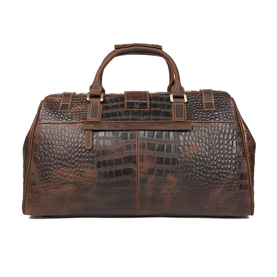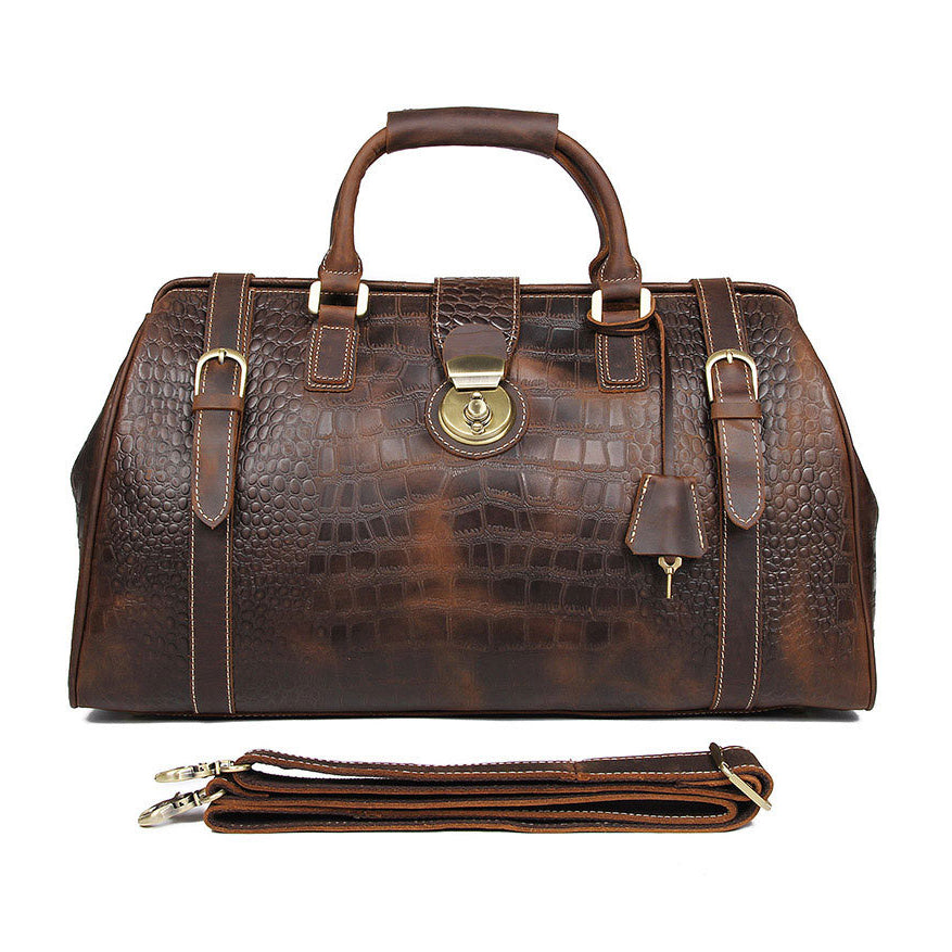 Lockable Leather Travel Duffel Bag Croc Embossed Weekender 20.5in