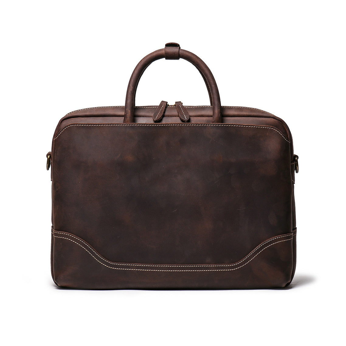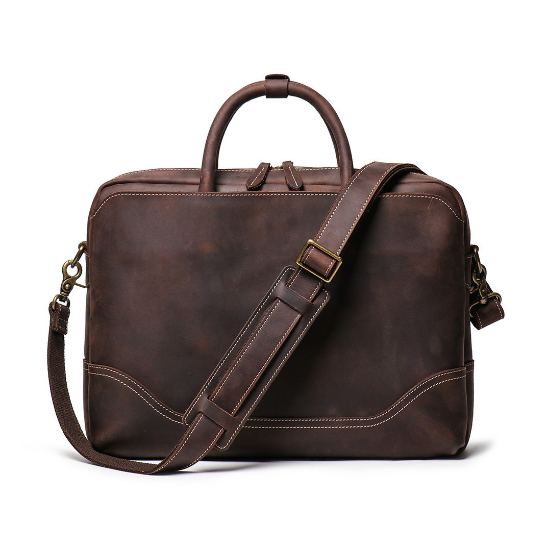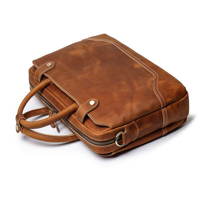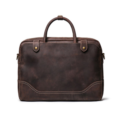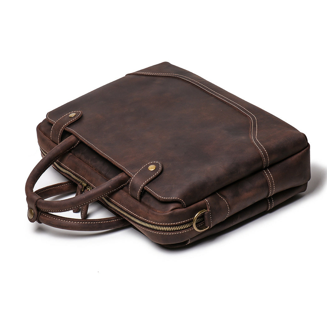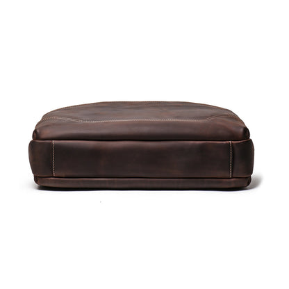 Vintage|Tannery Craft, Retro men's genuine leather handbag, crazy horse leather Laptop bag, large capacity cowhide business bag, 14.9 in Length