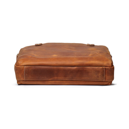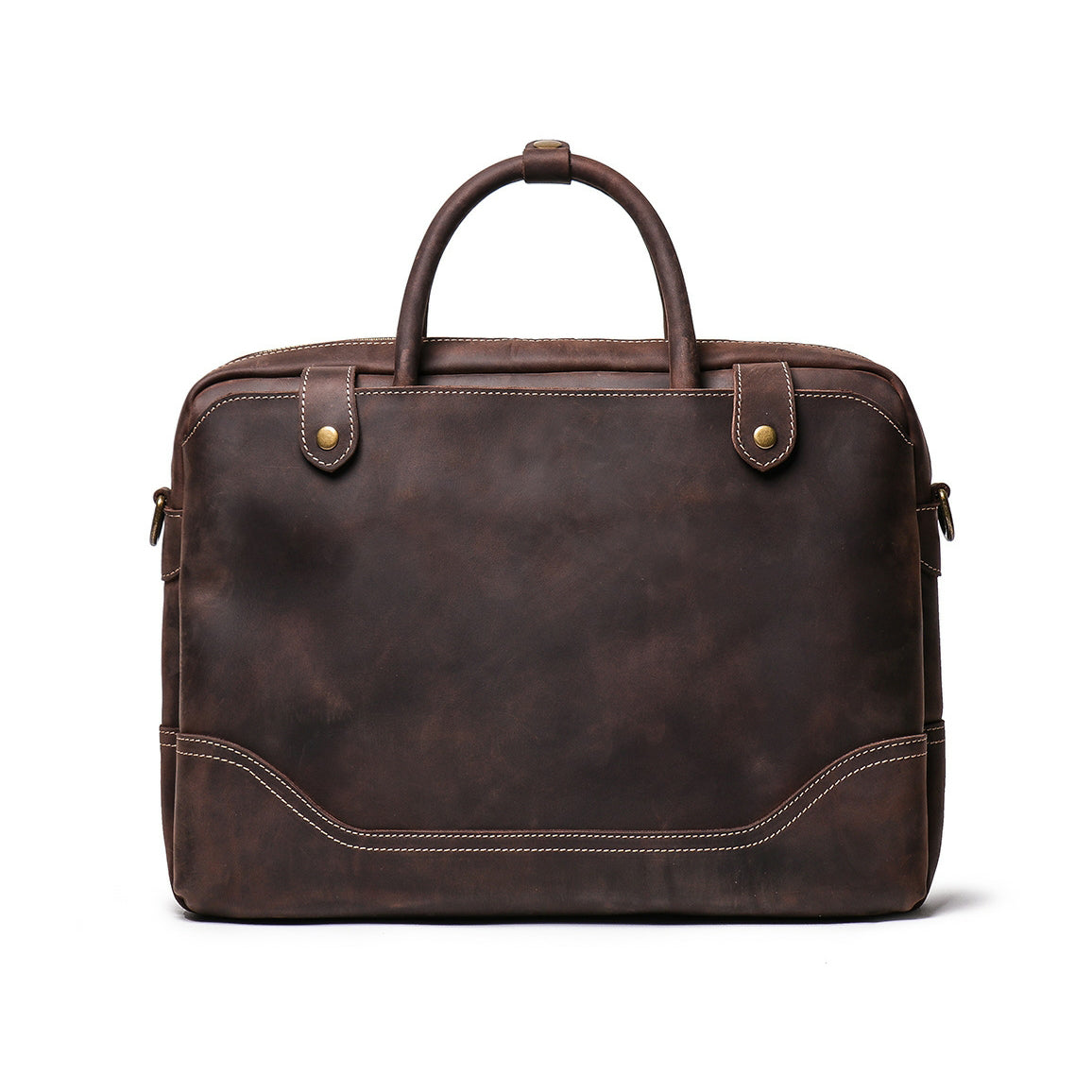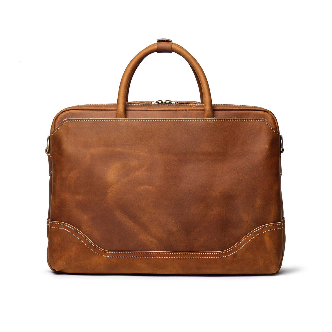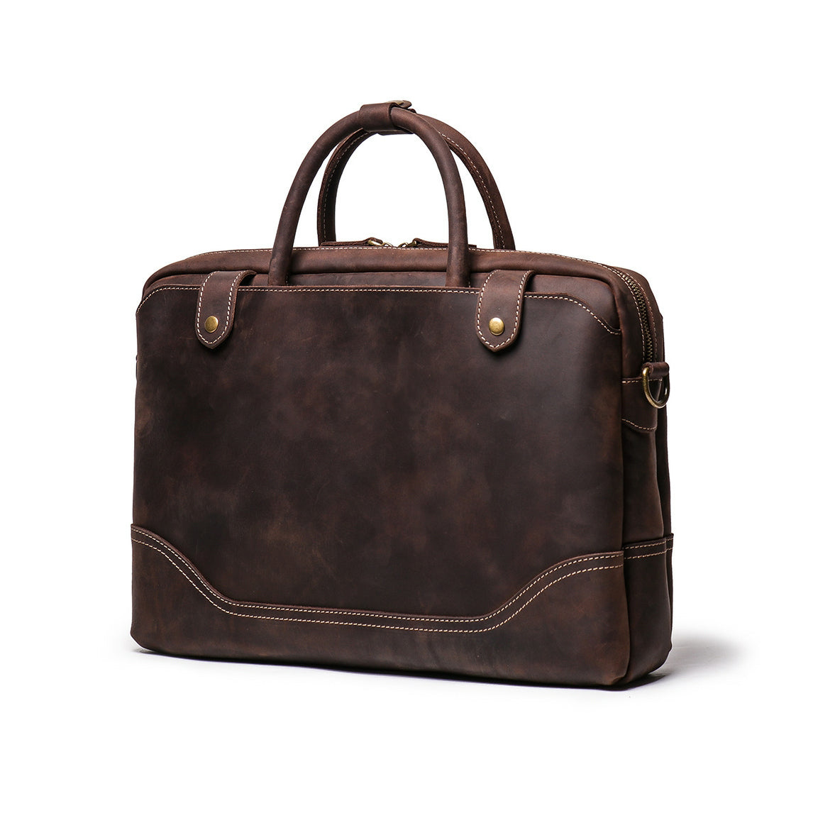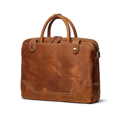 Vintage|Tannery Craft, Retro men's genuine leather handbag, crazy horse leather Laptop bag, large capacity cowhide business bag, 14.9 in Length