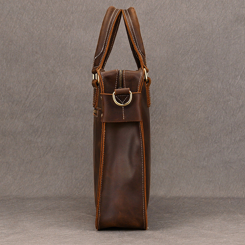 Retro Crazy Horse leather Full-Grain Leather 15" Laptop Briefcase - Heritage Executive Messenger